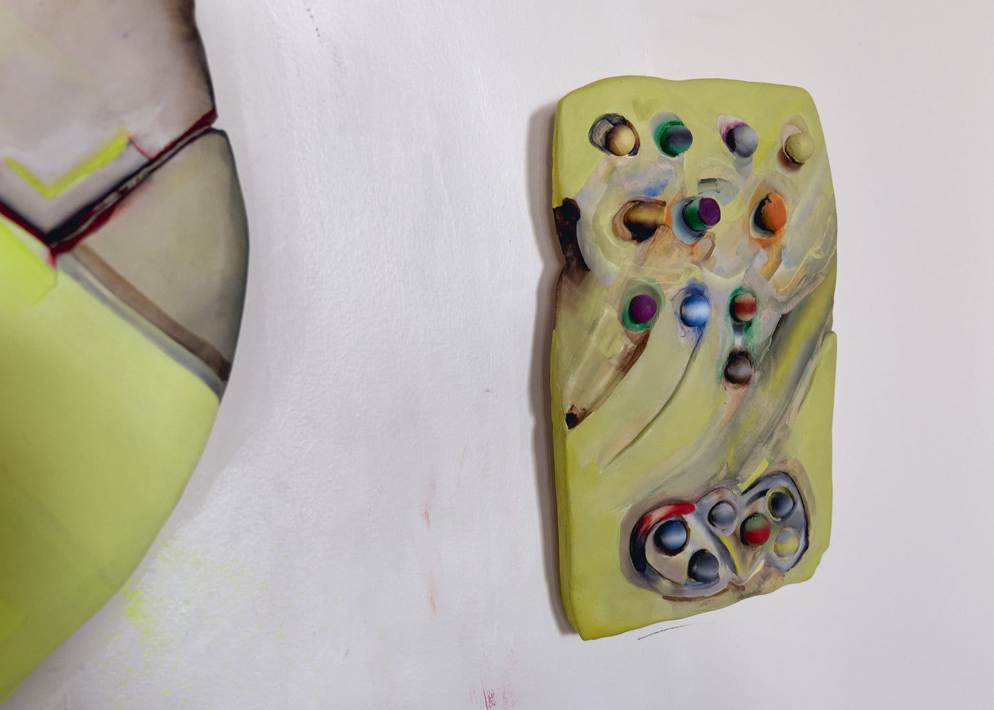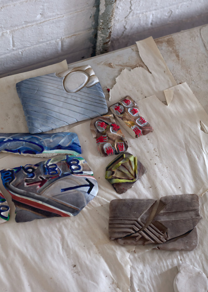 LK Once the clay dries, it’s set. The image has been excavated. I think of the painting as meeting the excavated image. Sometimes the two layers render and enforce each other, but I like moments of disagreement or misalignment as well.