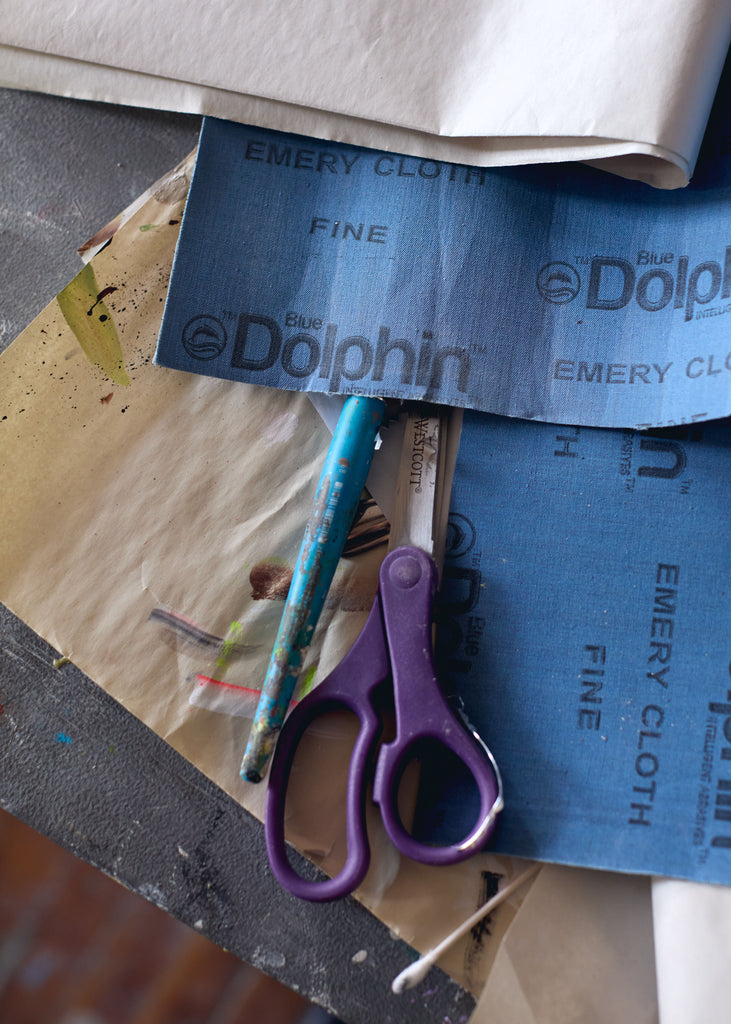LK I am usually working on one painting at a time, but I have a daily practice of making a small tile every day as a way of recording and metabolizing an image I’ve come across. So I’ll write or draw or carve what I want to see.
