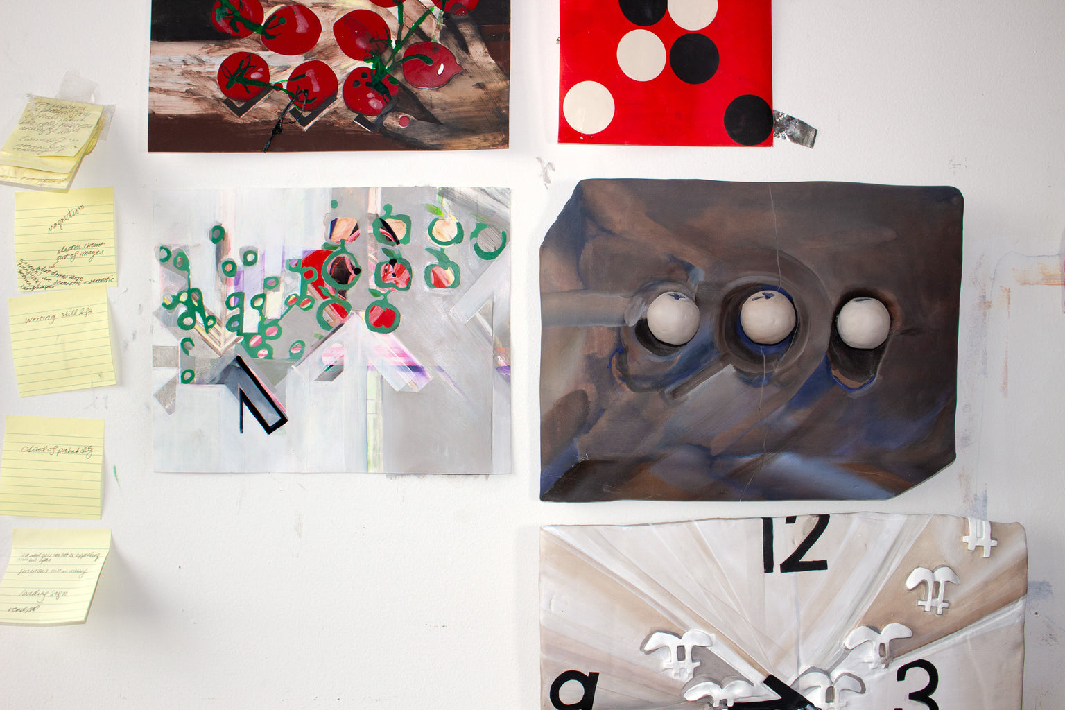 LK I love how you said that, I hadn’t thought about it like that. There’s forced coexistence. These images are introduced to one another in a way that they wouldn't have met out in the world. But I think there is a game element to each painting, where there’s an embedded path or circuit to each piece. The colors also sometimes seem electric on an old medium, charging the circulation of each image.
