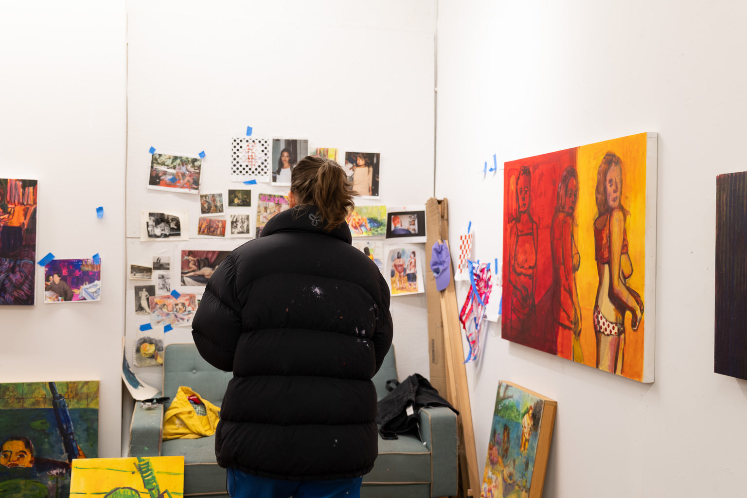 We also have a lot of storage downstairs, and going through older work is definitely part of my process. Sometimes before I start painting, I switch out paintings from storage and look at things that I still have.